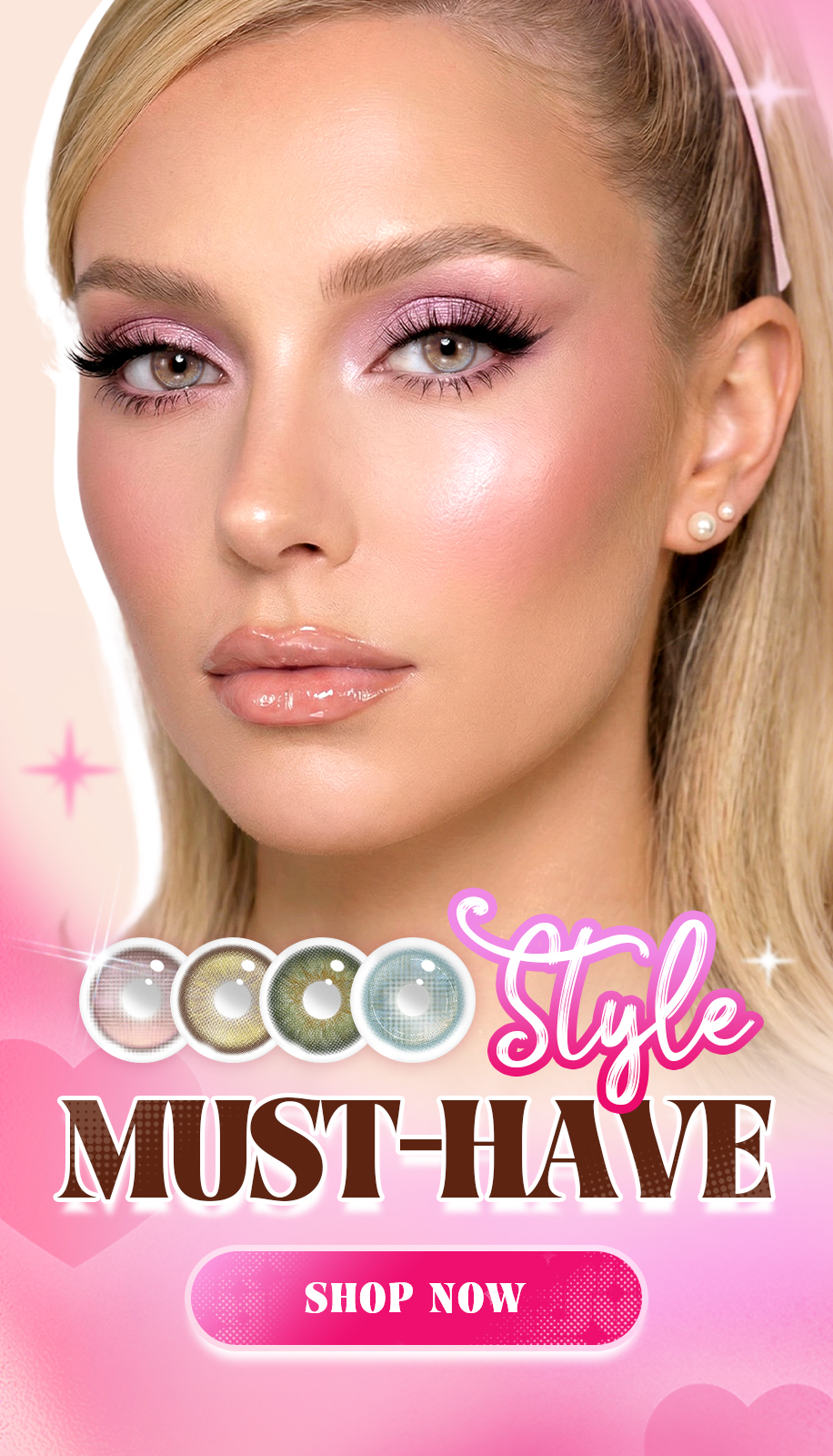 Akiwaii Cherry Pop Pink Yearly Contacts – Soft, Bright & Natural Pink Eyes